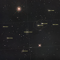 たくさんの銀河の集まりや天の川、複数の天体を撮影した星野写真です。(詳細をご覧になりたい方は画像をクリックしてください)