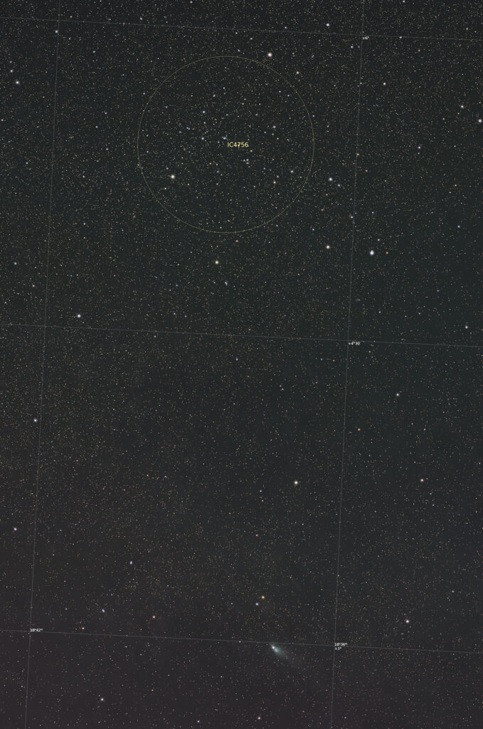 今回は、へび座にある散開星団(IC4756)のそばを通ることから撮影してみた。