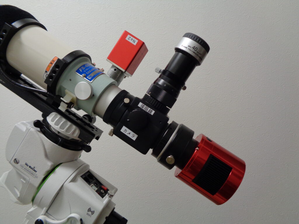 具体的には、「M56P0.75⇒2インチ変換アダプター」を介してFS-60CBに2インチのフリップミラーが取り付けれるようにしてアイピースとCMOSカメラを取り付けれるようにしました。