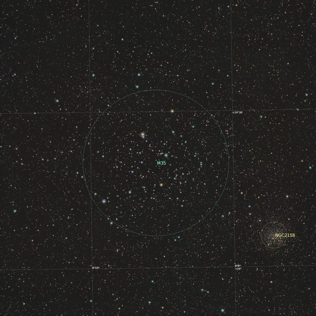 ふたご座にある満月ほどの大きさの散開星団。