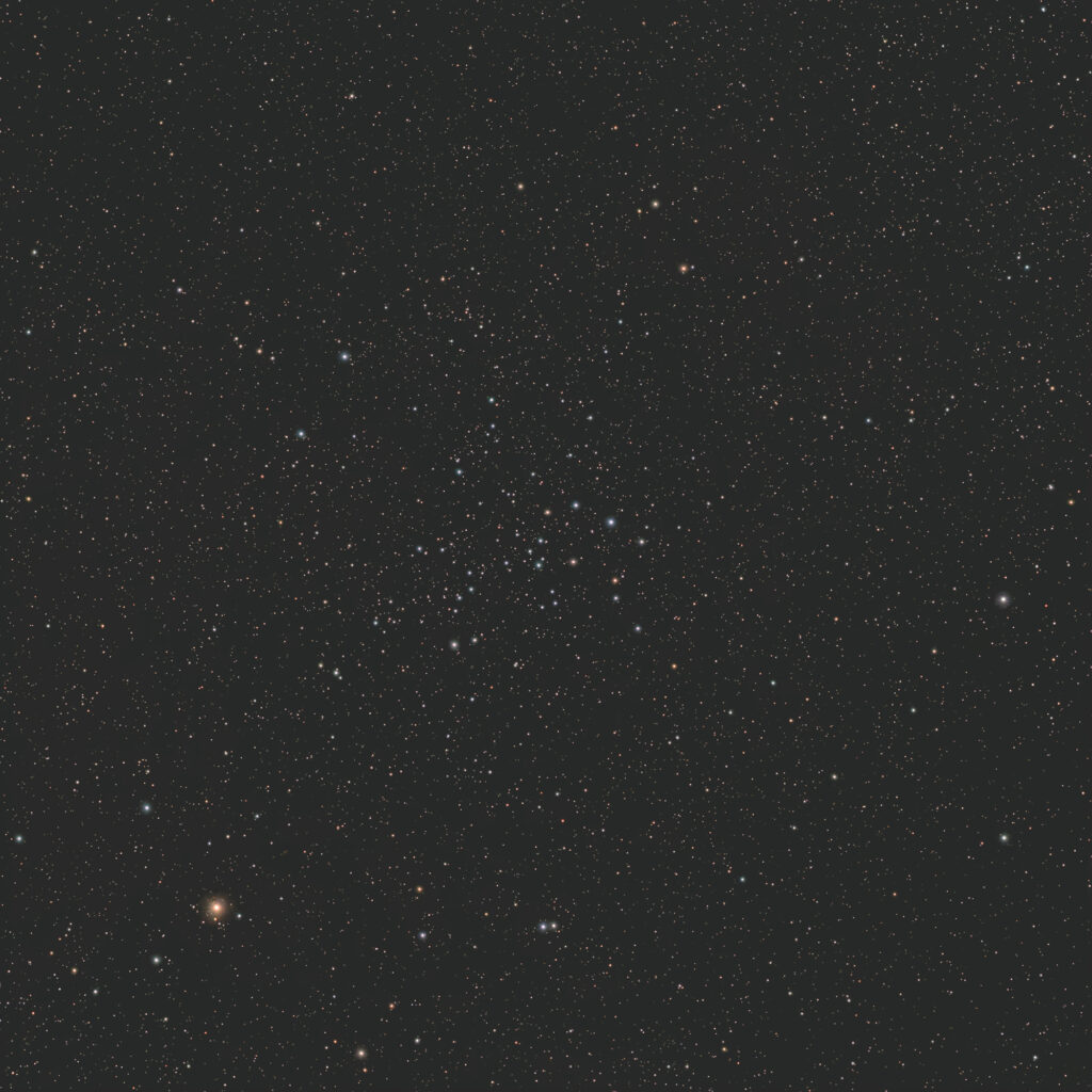 ペルセウス座には二重星団(NGC869/NGC884)、M34といった見応えがある散開星団がいくつかあるが、NGC1528もかわいらしく80個ほどの星が寄り添う散開星団である。