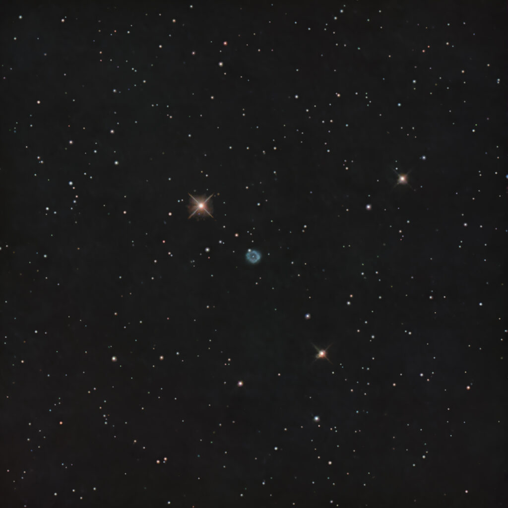 中心星を取り囲む青いリング状の光が特徴的だが、撮影時期から見て南天に低く辛うじてリングを見ることができる。