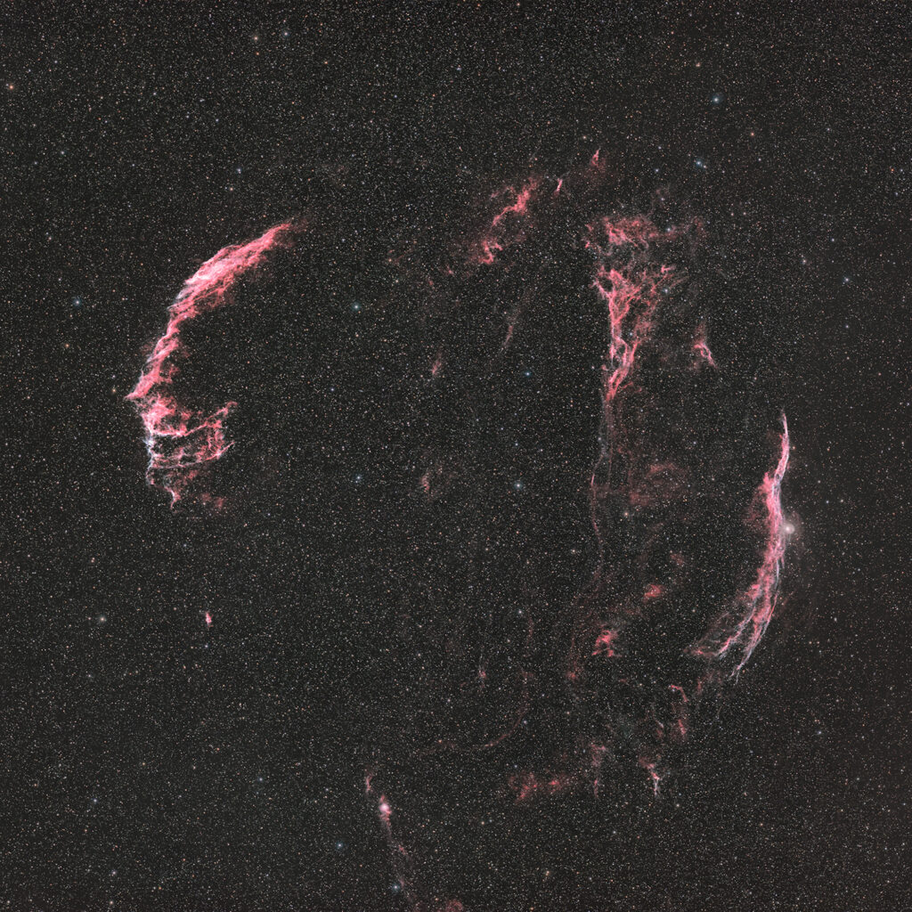 比較的明るく写しやすい東側(左側)と比べると、とても繊細で糸 が絡んだように見えることから「糸状星雲」と呼ばれることもある。