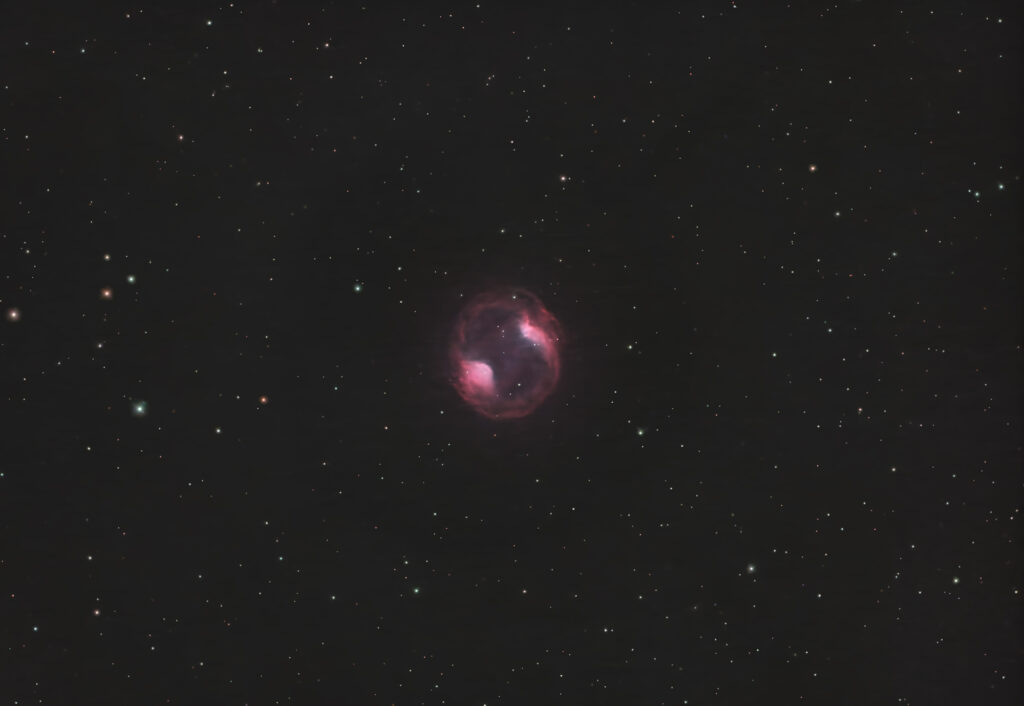 やまねこ座中央部に位置する比較的大型の惑星状星雲。